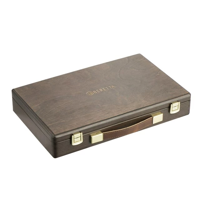 Wooden case cleaning kit for rifle with Beretta logo laser engraved. 6mm cal.